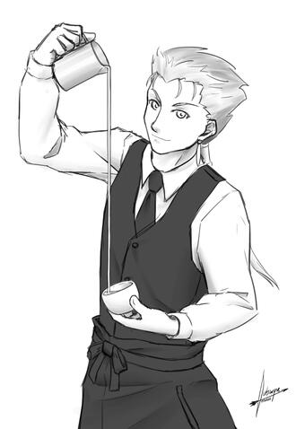 I present a rough sketch focused on the bigger picture such as pose, composition, and character proportion. Revise until satisfied.